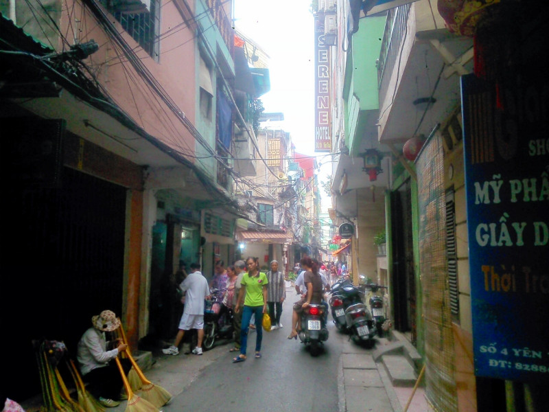 朝食に満足して、3人が泊まっている、ハノイ チャーミング ホテル(笑)へ。こんな廃れた通りにあるホテルですが、ホテルの中は立派なんです。